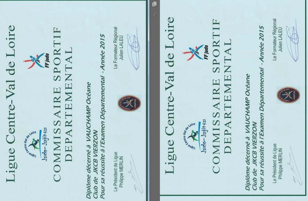 récompenses et diplômes des membres du JKCB Vierzon lors de l'Assemblée Générale du Comité Départemental de judo. Félicitations à Océane et à Eddy.